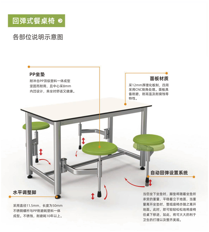 回弹式餐桌椅